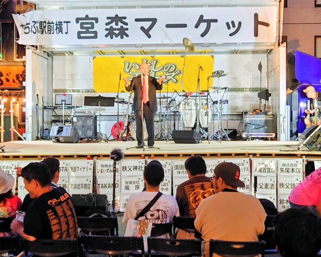 秩父駅前エリアの活性化を進めるため、地元の「みやのかわ商店街振興組合」の方々と商店街をもっと元気にしたいとの志を持つ移住者の方々を主催者とする「第1回秩父駅前横丁~宮森マーケット」が開催されました。 戦後、秩父神社の森…