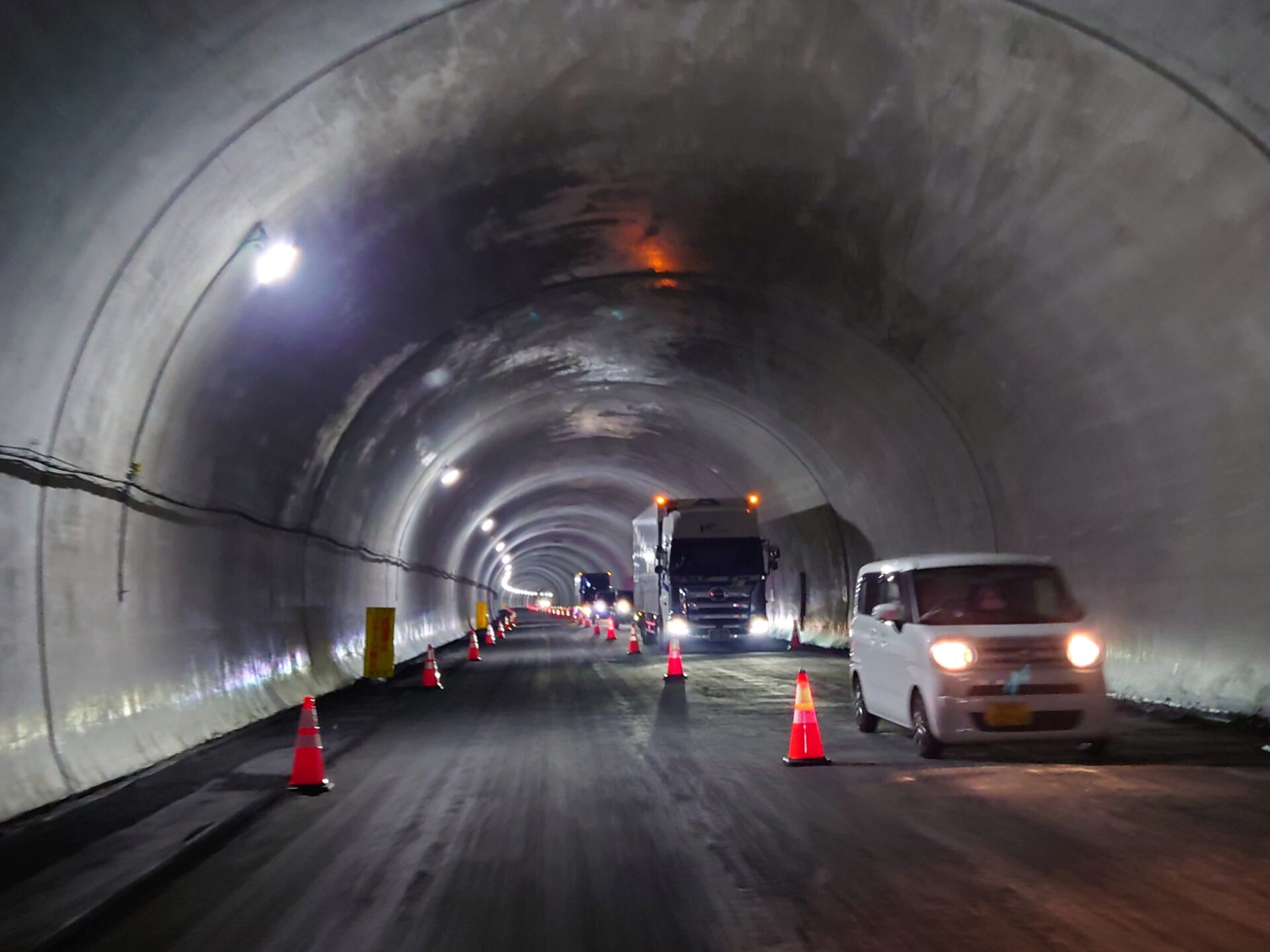 なお、大滝トンネルは現在も工事中のため、砂利道での暫定供用となります。安全確保のため、通行にあたっては下記の点にご協力をお願いいたします。
